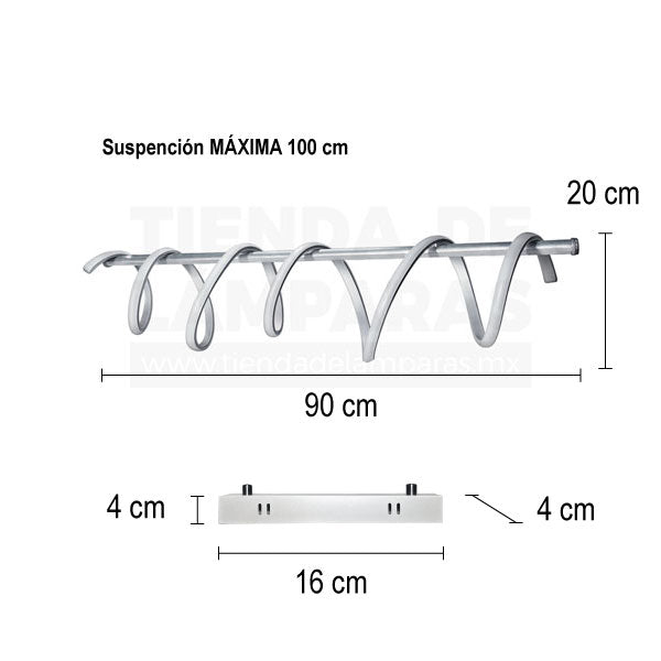 Luminaria para techo de sobreponer con soporte de aluminio y manguera de LEDcon 3 temperaturas de color (cálida, neutra y fría).